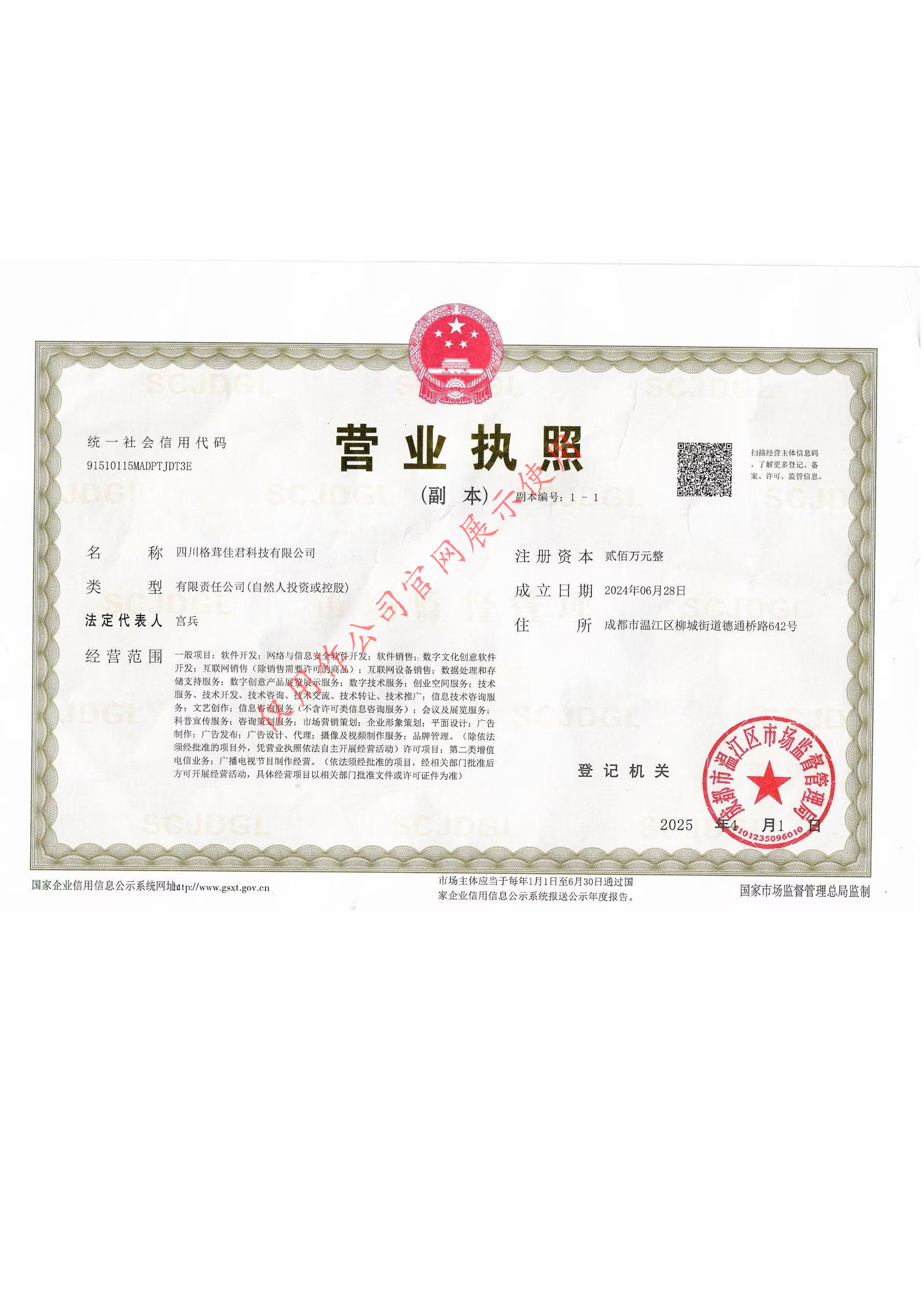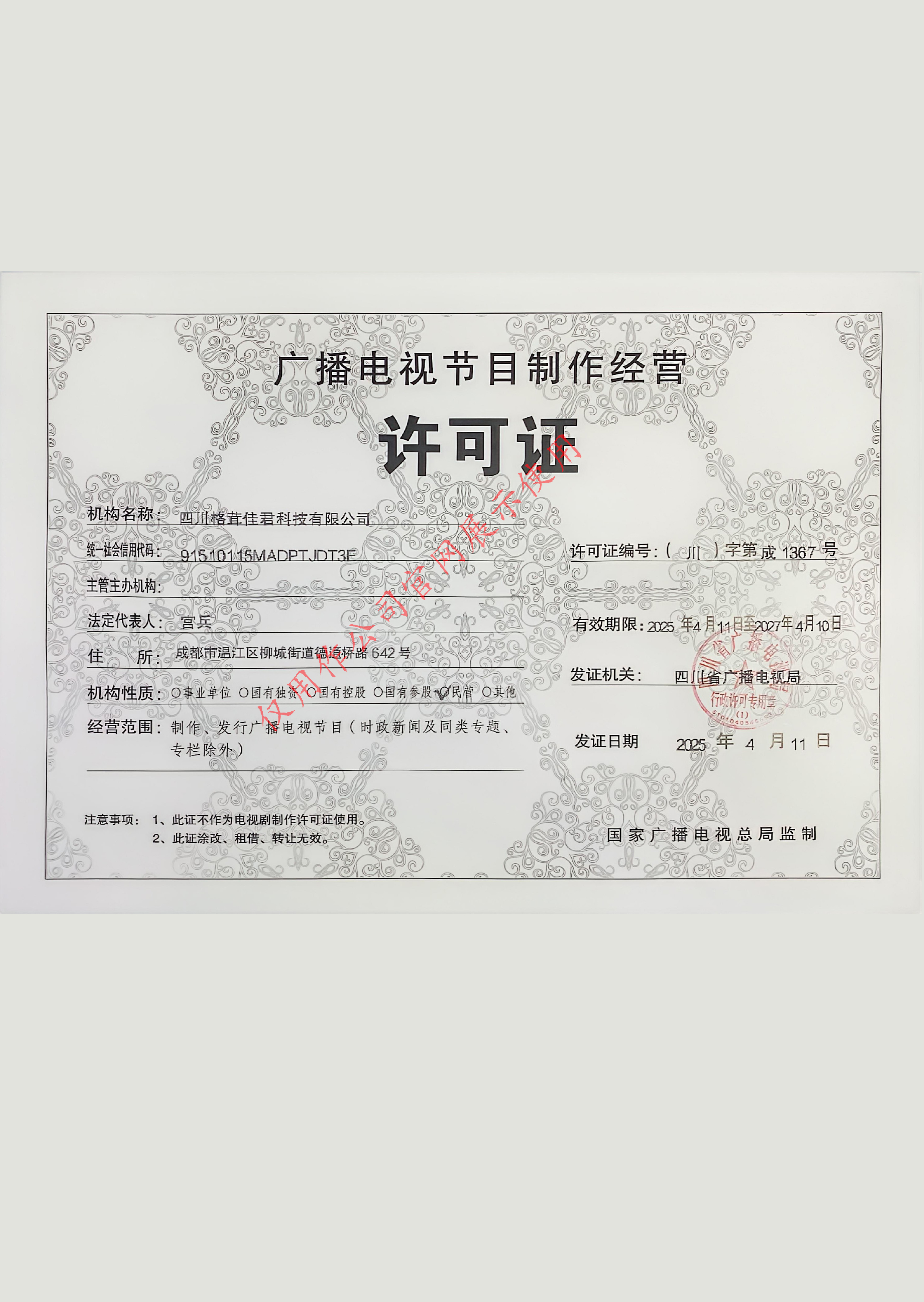 四川格茸佳君科技有限公司于2023年6月正式成立,位于四川省成都市,系一家秉持“以技术为核心,以科技为驱动力”理念的创新型科技公司。公司规模庞大、实力强劲、技术团队专业,具备多项专业资质,系中央新影中学生频道电视台旗下授权单位,四大广告联盟平台合作单位。服务范围覆盖全国各个地区。本公司致力于为客户提供“APP开发+广告联盟资源整合”的专业服务,以技术为基石、以变现为核心,为全国客户提供从产品开发到流量变现的全链路解决方案,助力合作伙伴顺利切入短剧、游戏赛道,抢占广告联盟红利。自成立以来,本公司始终坚守“创新驱动、专业赋能、高效执守”的核心价值导向,深耕网络传媒领域,将构建全链条、高质量的传媒服务生态体系作为战略目标。通过持续发挥专业化服务优势,积极开展创新实践探索,在行业内逐步树立起创新驱动,可靠随行的优良品牌形象。